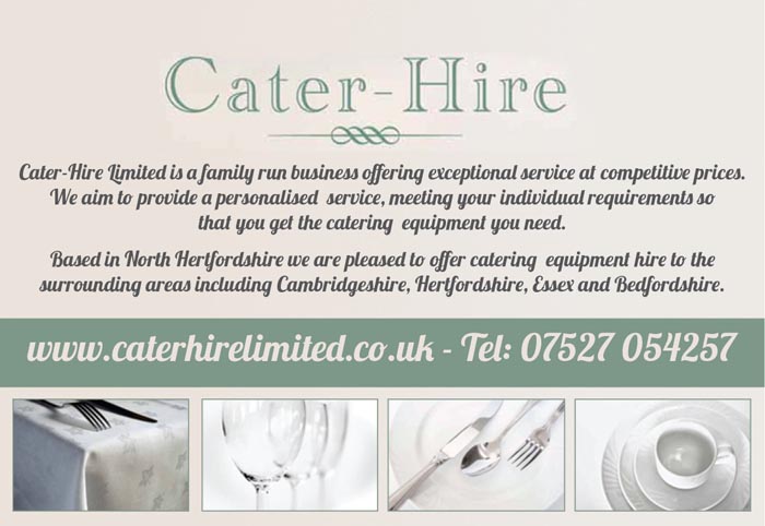 Situated in North Hertfordshire we offer catering equipment hire to the local areas including Cambridgeshire, Hertfordshire, Essex and Bedfordshire. You can hire a complete range of catering equipment including crockery, cutlery, glassware, table linen and furniture so that your event is a success. All hired items are good quality and in good condition. We ensure high standards of cleanliness and hygiene. All tableware is machine washed. Cutlery and crockery are cling-film wrapped in 10’s ready to use.