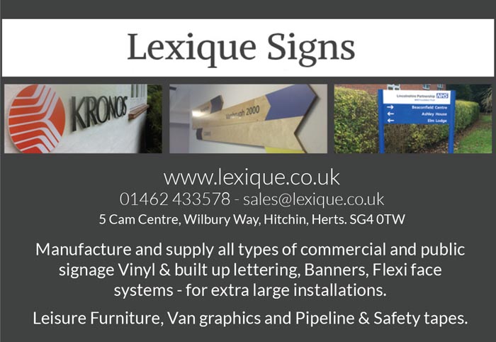 Lexique Signs manufacture and supply all types of commercial and public signage including Safety signs, Corporate sign systems, Internal sign systems, Fascia signs (shop/retail), Entrance signs, Fire signage, Directional signs, Environmental signs, Road signs (fixed & temporary), Banners, Flexi face systems – for extra large installations, Vinyl & built up lettering, Security signs, Car park signs, Van graphics, Pipeline & Safety tapes.